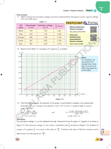 a graph of V against —, m is equal to the value of ——. Therefore, the value of Planck’s constant can be CHAP