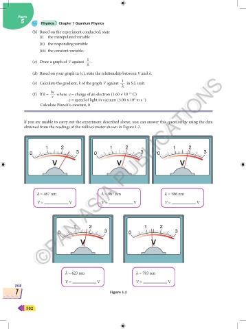 (e) Calculate the gradient, k of the graph V against –— in S.I. unit.