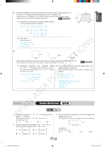 1. Persamaan kuadratik x – kx – 18 = 0 mempunyai satu 3. Rajah di bawah menunjukkan sebuah segi empat tepat