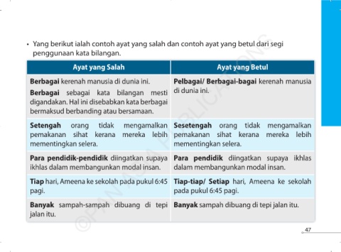 • Yang berikut ialah contoh ayat yang salah dan contoh ayat yang betul dari segi
