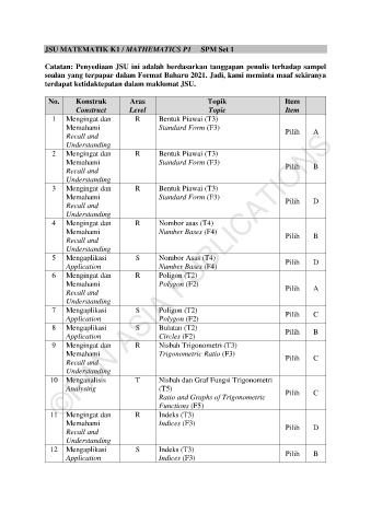 JSU MATEMATIK K1 / MATHEMATICS P1 SPM Set 1