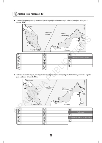 1. Tuliskan nama negeri-negeri dan wilayah-wilayah persekutuan mengikut huruf pada peta Malaysia di