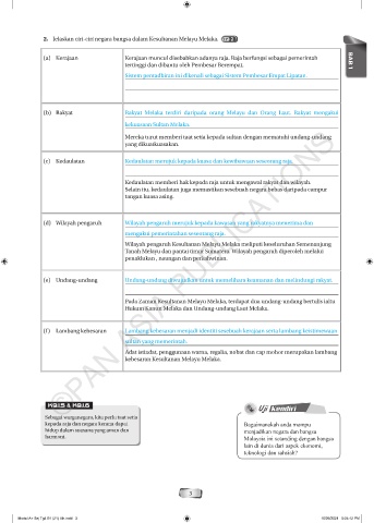 2. Jelaskan ciri-ciri negara bangsa dalam Kesultanan Melayu Melaka. TP 2