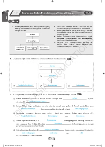 1. Lengkapkan rajah sistem pentadbiran Kesultanan Melayu Melaka di bawah. TP 1