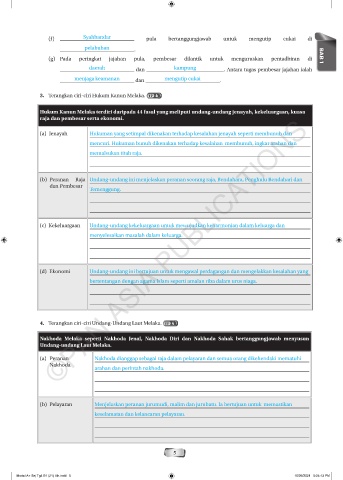 3. Terangkan ciri-ciri Hukum Kanun Melaka. TP 4