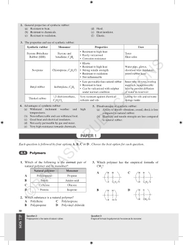 1. Which of the following is the correct pair of 3. Which polymer has the empirical formula of