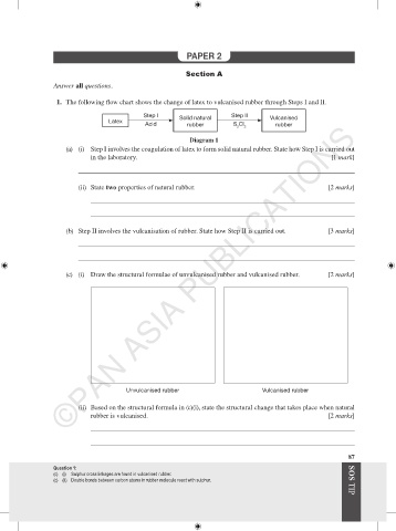 1. The following flow chart shows the change of latex to vulcanised rubber through Steps I and II.