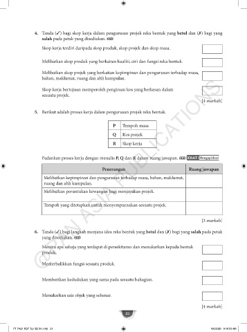 4. Tanda (✓) bagi skop kerja dalam pengurusan projek reka bentuk yang betul dan (✗) bagi yang