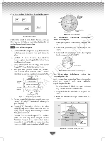 2.2 Latitud dan Longitud 2. Kenal pasti garisan longitud Kuala Lumpur, iaitu