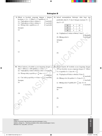 9. Diberi m berubah songsang dengan y dengan 11. Jadual menunjukkan beberapa nilai bagi tiga