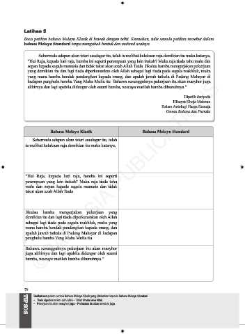 Baca petikan bahasa Melayu Klasik di bawah dengan teliti. Kemudian, tulis semula petikan tersebut dalam