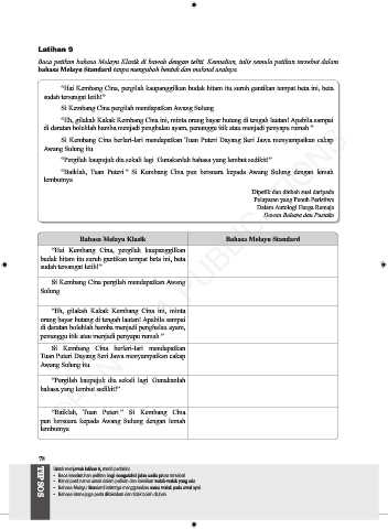 Baca petikan bahasa Melayu Klasik di bawah dengan teliti. Kemudian, tulis semula petikan tersebut dalam