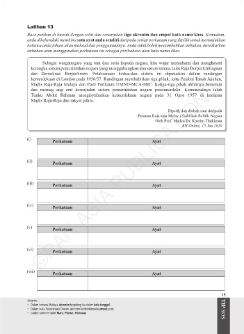 Baca petikan di bawah dengan teliti dan senaraikan tiga akronim dan empat kata nama khas. Kemudian,
