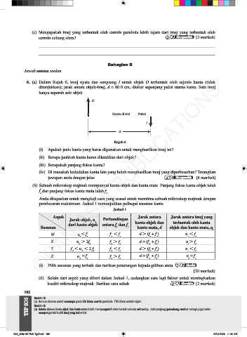 (b) Sebuah mikroskop majmuk mempunyai kanta objek dan kanta mata. Panjang fokus kanta objek ialah