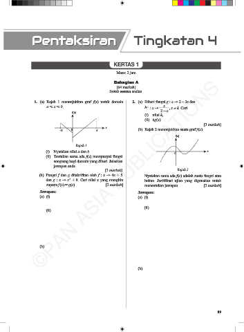 1. (a) Rajah 1 menunjukkan graf f(x) untuk domain 2. (a) Diberi fungsi g : x → 2 – 3x dan
