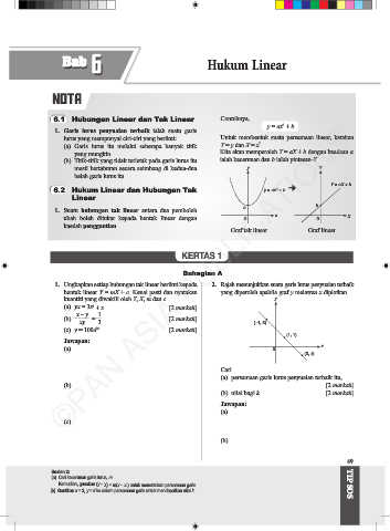 1. Ungkapkan setiap hubungan tak linear berikut kepada 2. Rajah menunjukkan suatu garis lurus penyuaian terbaik