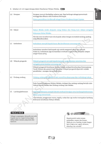 2. Jelaskan ciri-ciri negara bangsa dalam Kesultanan Melayu Melaka. TP 2