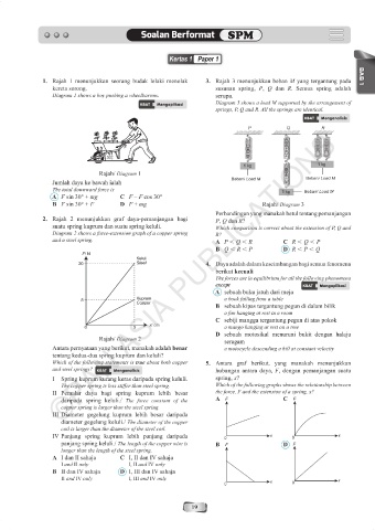 suatu spring kuprum dan suatu spring keluli. Which comparison is correct about the extension of P, Q and