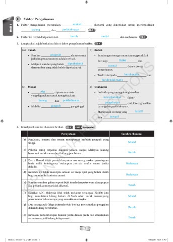 BAB 1 1. Faktor pengeluaran merupakan perkhidmatan . TP 2