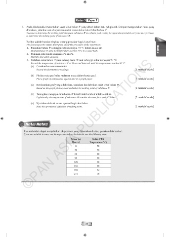 1. Anda dikehendaki menentukan takat lebur bahan W yang diberi dalam satu pek plastik. Dengan menggunakan radas yang
