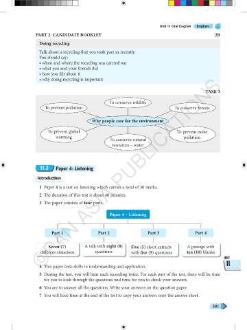 1 Paper 4 is a test on listening which carries a total of 30 marks.