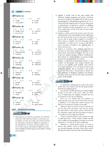 1. B 2. A 3. F 4. C 4. English is important when dealing with business