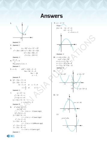 Answer: A 10. y = a(x + 4)(x – 1)