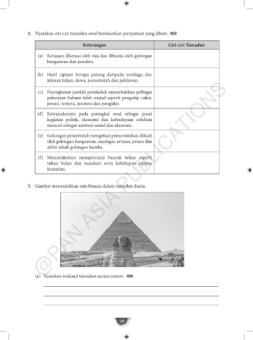 2. Nyatakan ciri-ciri tamadun awal berdasarkan pernyataan yang diberi. TP3