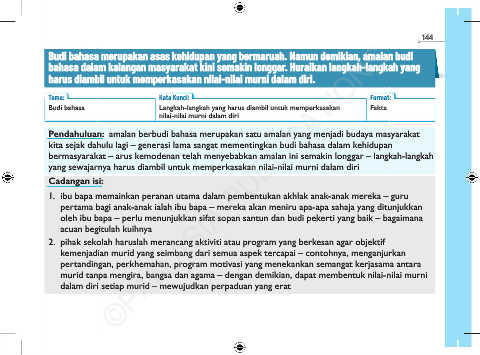 Budi bahasa Langkah-langkah yang harus diambil untuk memperkasakan Fakta