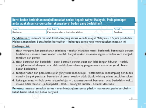 Berat badan berlebihan menjadi masalah serius kepada rakyat Malaysia. Pada pendapat