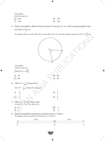 5. Rajah menunjukkan sebuah bulatan berpusat O dan jejari 21 cm. Diberi panjang lengkok major