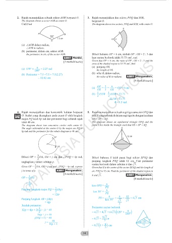 2. Rajah menunjukkan sebuah sektor AOB berpusat O. 3. Rajah menunjukkan dua sektor, POQ dan SOR,