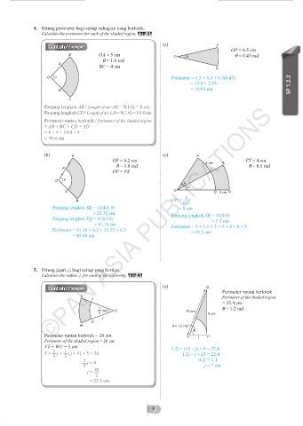 Panjang lengkok AB / Length of arc AB = 5(1.6) = 8 cm