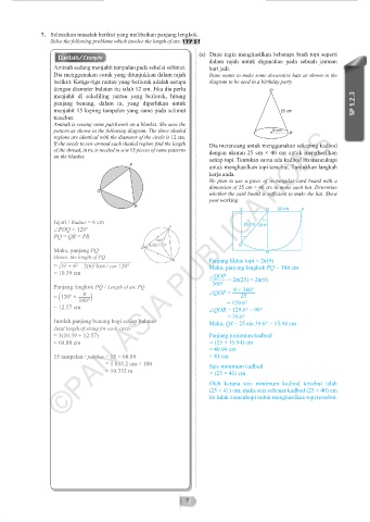 7. Selesaikan masalah berikut yang melibatkan panjang lengkok.