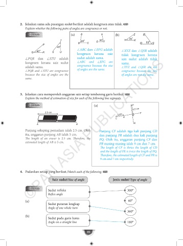 2. Jelaskan sama ada pasangan sudut berikut adalah kongruen atau tidak. TP2