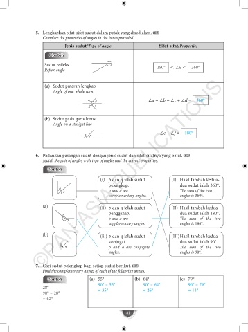 6. Padankan pasangan sudut dengan jenis sudut dan sifat-sifatnya yang betul. TP2