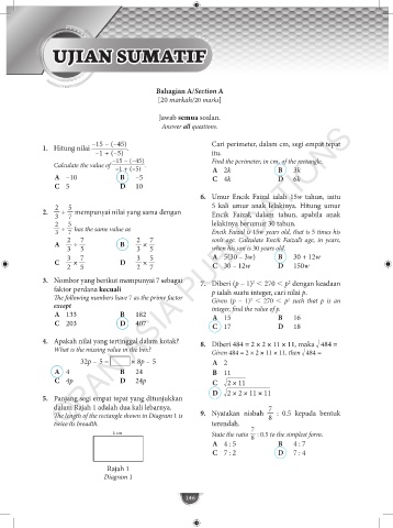–15 – (–45) Cari perimeter, dalam cm, segi empat tepat