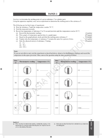 Using the apparatus supplied, carry out an experiment to determine the melting point of the substance T.