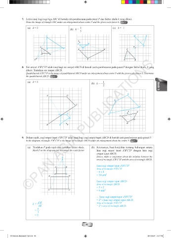 8. Sisi empat A′B′C′D′ ialah imej bagi sisi empat ABCD di bawah suatu pembesaran pada pusat P dengan faktor skala, k yang