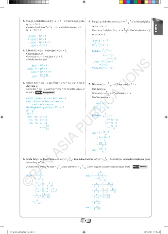 6. Diberi k(x) = mx – n dan k (x) = 27x + 12. Cari nilai m 7. Diberi u(x) = 5 , x ≠ 7 dan vu(x) = 3 + x.