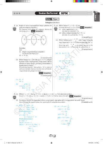 1. (a) Rajah di bawah menunjukkan fungsi gubahan hk 2. (a) Diberi fungsi k : x → 2x + 9, cari