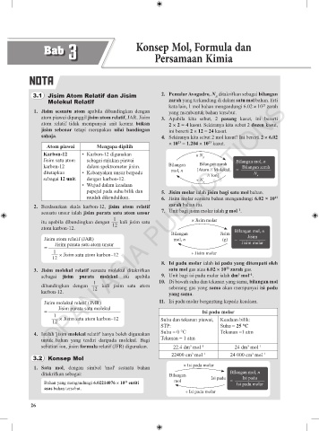3.1 Jisim Atom Relatif dan Jisim 2. Pemalar Avogadro, N ditakrifkan sebagai bilangan