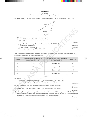 12. (a) Dalam Rajah 7, ABC ialah sebuah segi tiga dengan keadaan AB = 13 cm, AC = 8.5 cm dan ∠ABC = 38°.