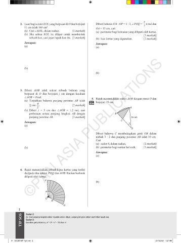 2. Luas bagi sektor KOL yang berpusat di O dan berjejari Diberi bahawa OA : OP = 1 : 3, ∠POQ = —π rad dan