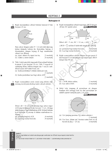 1. Rajah menunjukkan sebuah bulatan berpusat O dan 4. Rajah menunjukkan sebuah trapezium ABCD dengan