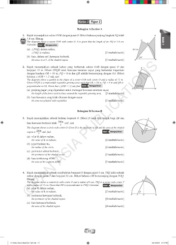 berjejari 12 m. Diberi OPQR ialah kawasan tanaman sayur yang berbentuk trapezium