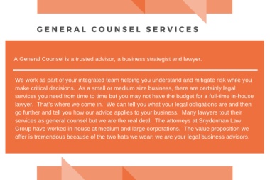 services as general counsel but we are the real deal. The attorneys at Snyderman Law