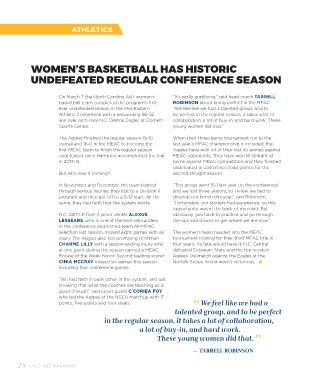 basketball team completed the program’s first- roBinson about being perfect in the MEAC.