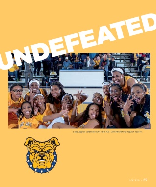 including four conference games. Lady Aggies celebrate win over N.C. Central during regular season.