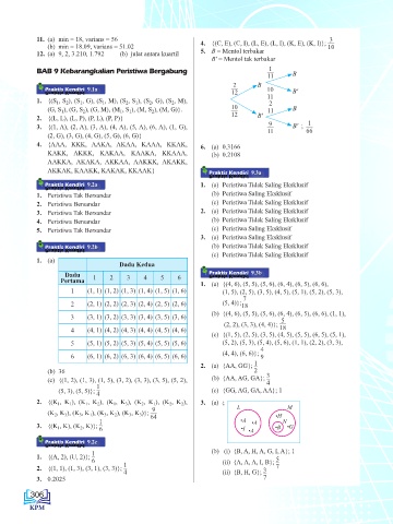 11. (a) min = 18, varians = 56 4. {(C, E), (C, I), (L, E), (L, I), (K, E), (K, I)};
